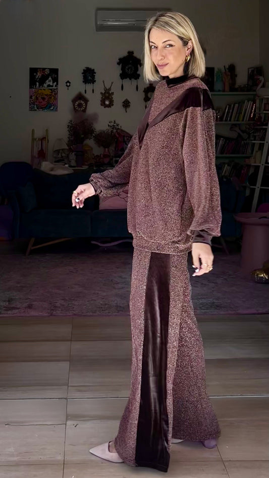סווטשירט סילבסטר מנצנץ - ברונזה וחום שוקולד -