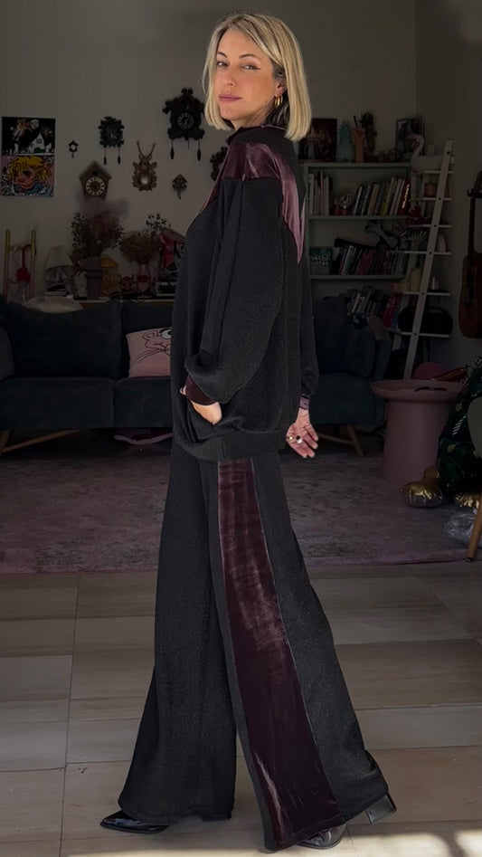 סווטשירט סילבסטר מנצנץ - שחור וסגלגל -