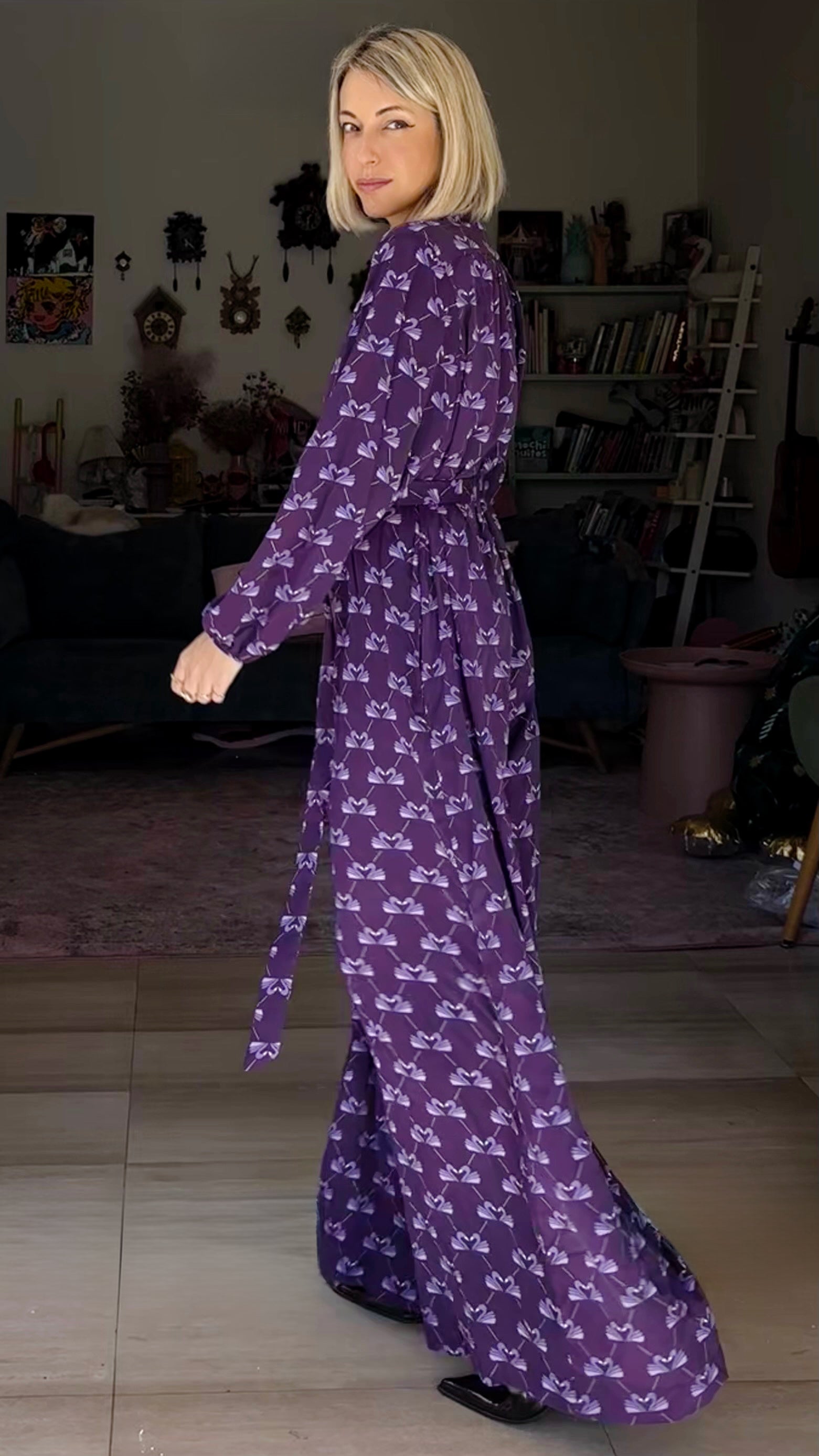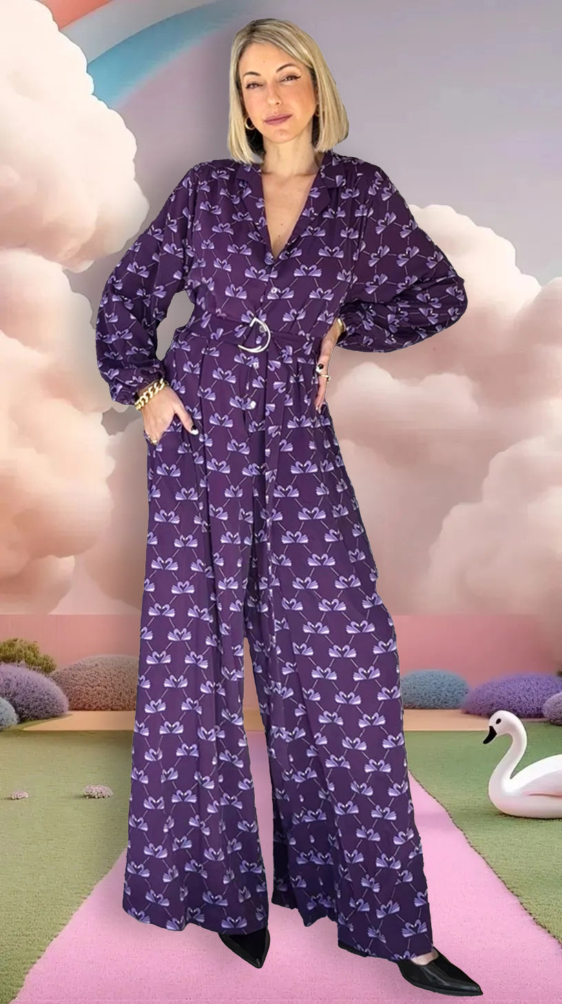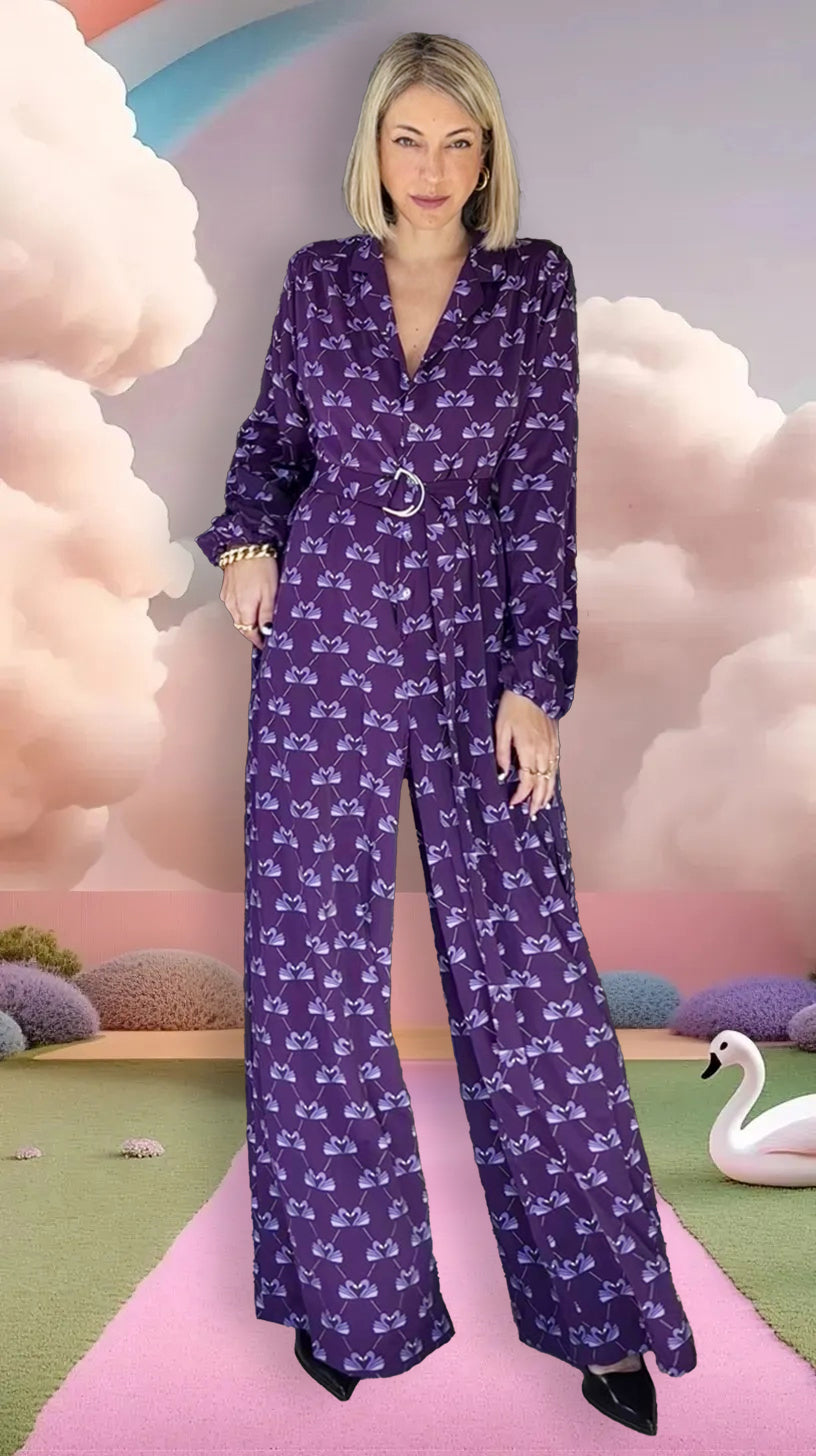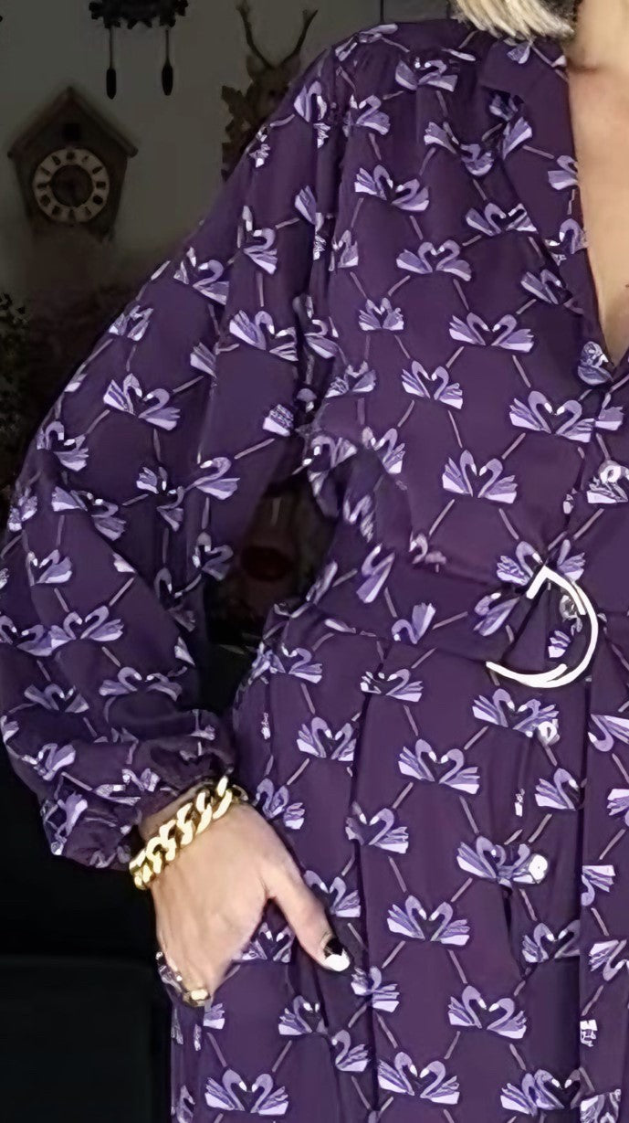 - דגם סגול מלכותי עם טוויסט של הדפס הברבורים האהוב עלינו.