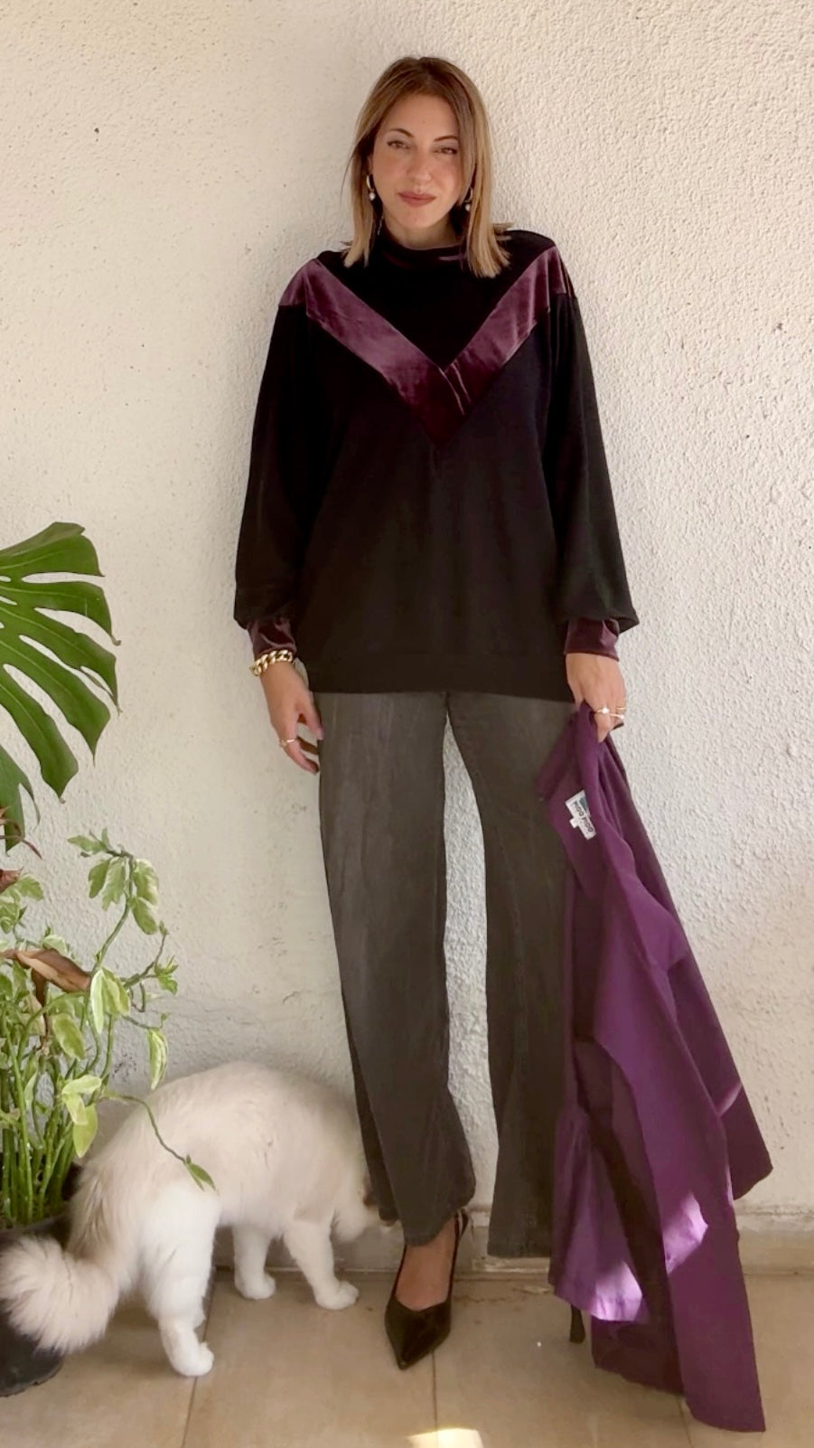 וחולצת לורקס עם שרוולים תפוחים בשילוב צווארון חצי גולף מקטיפה נעימה,
