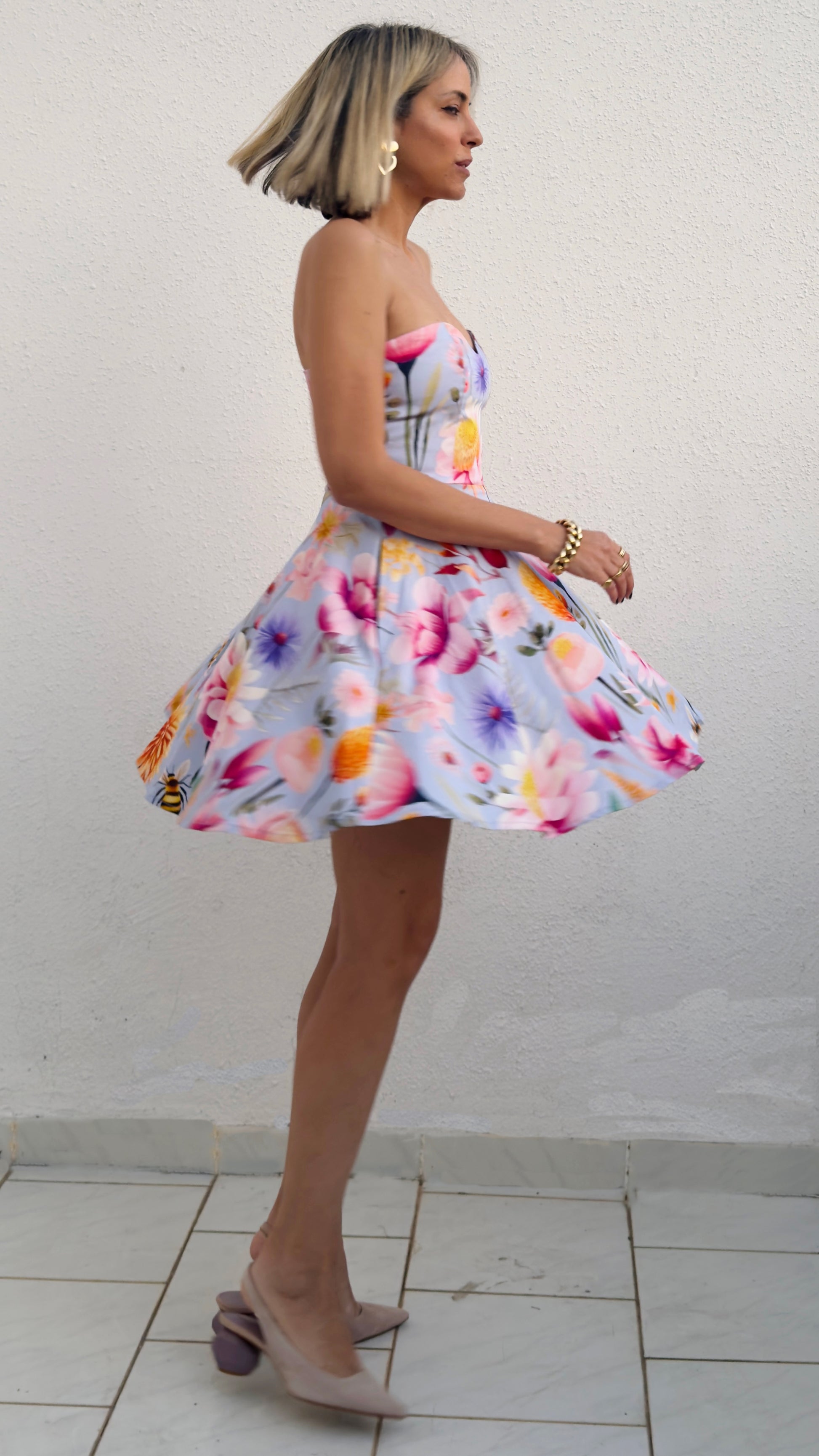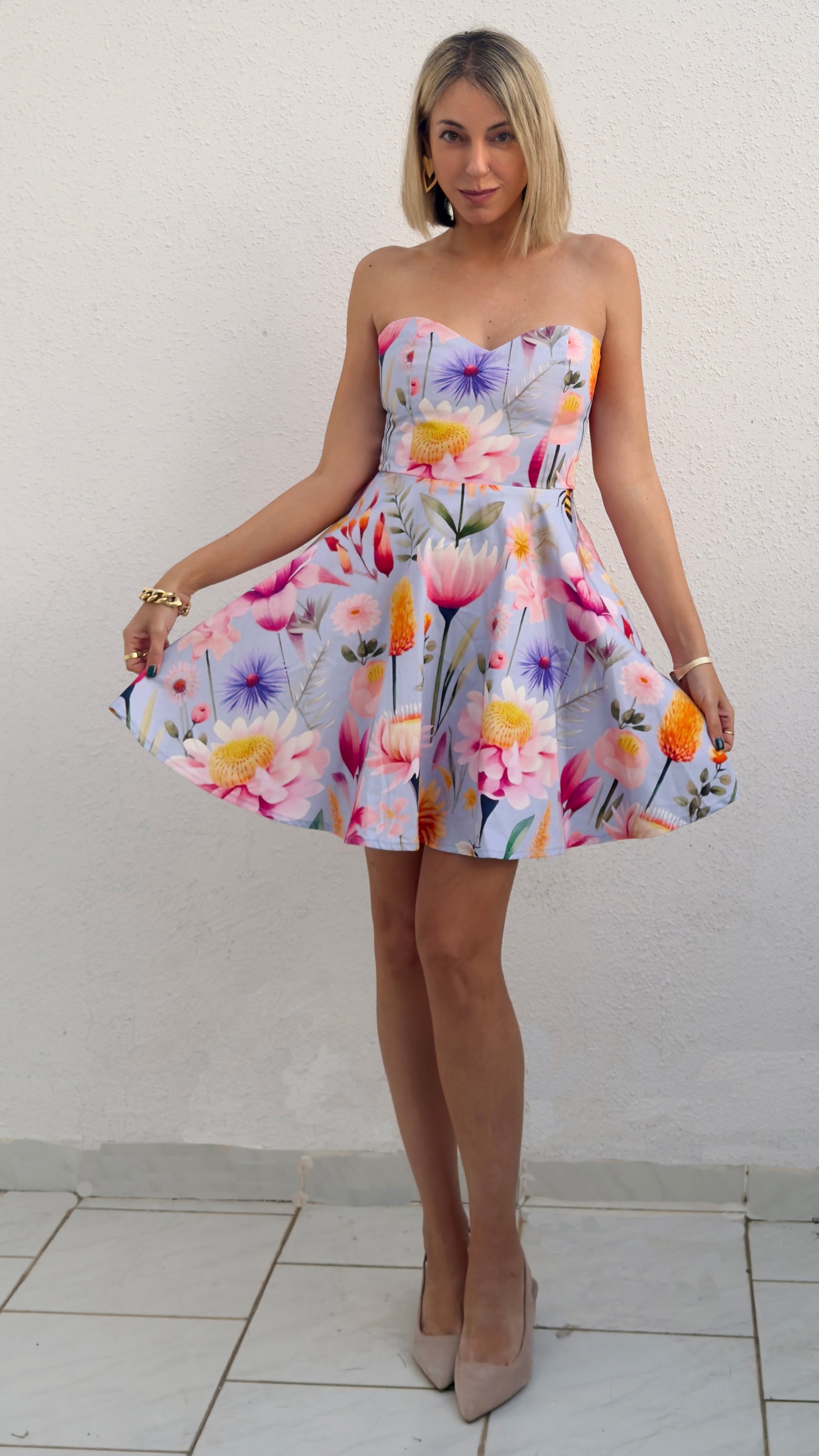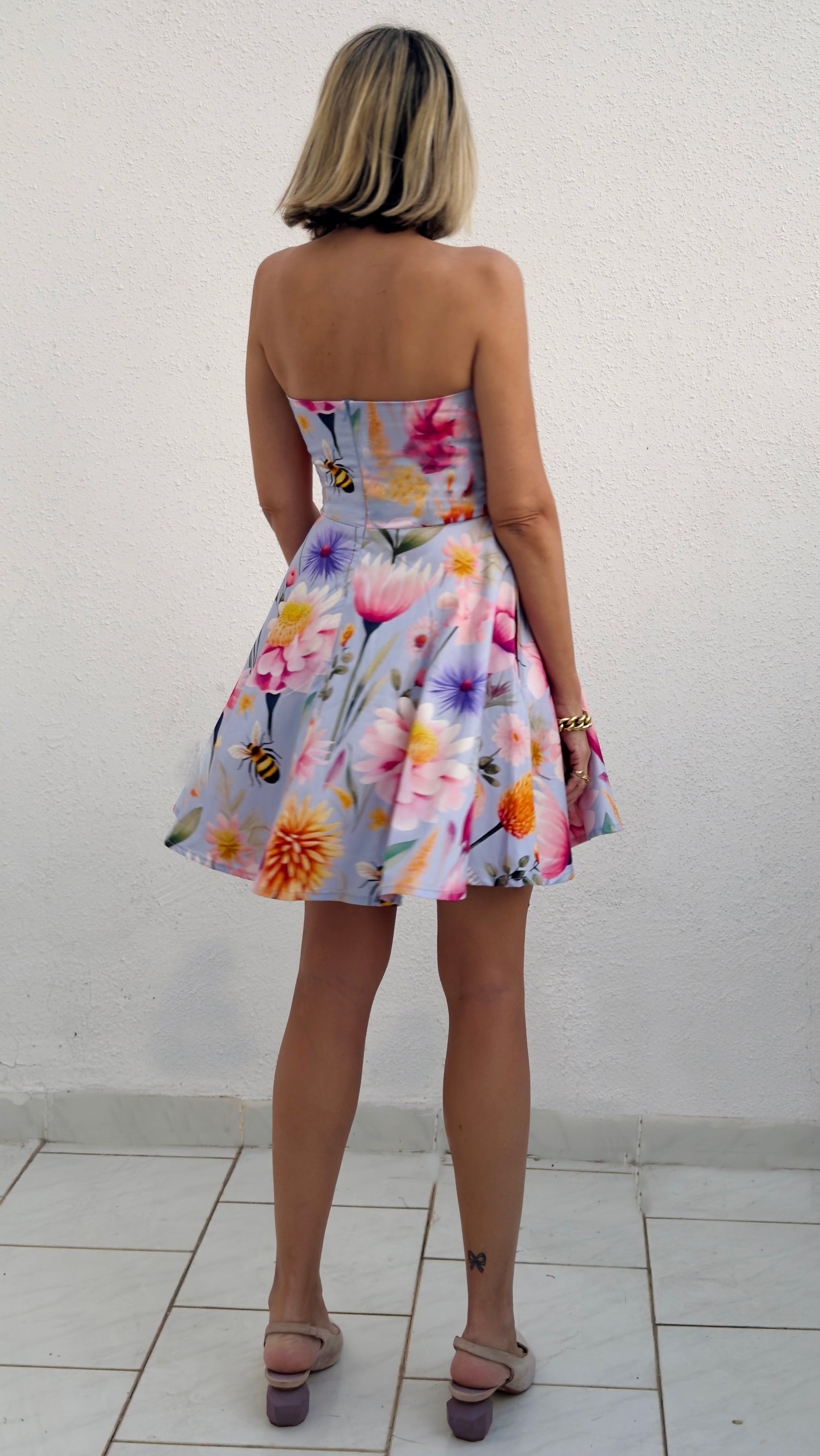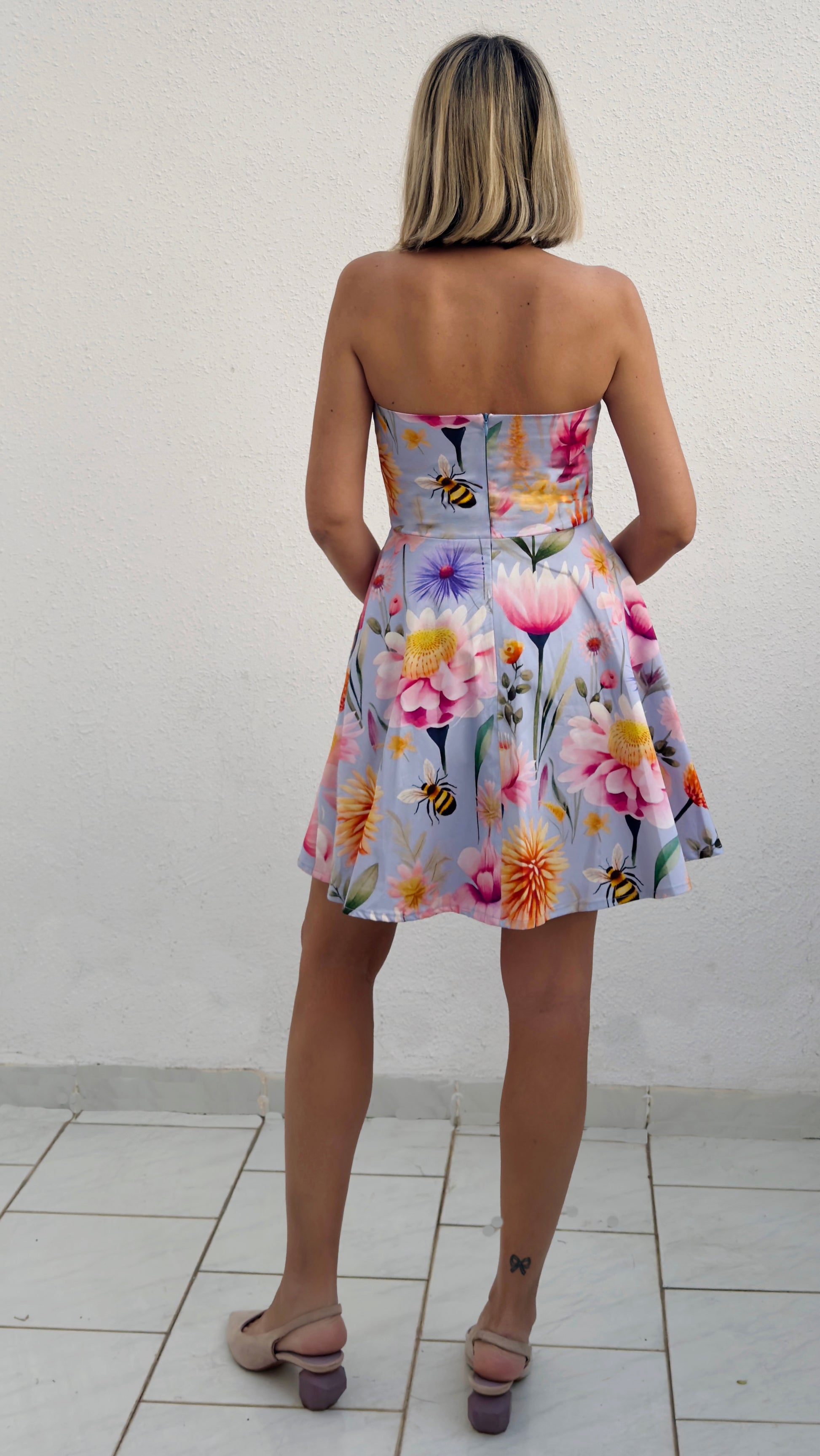 קוקו - שמלת קוקטייל סטרפלס - פרינט פרחים