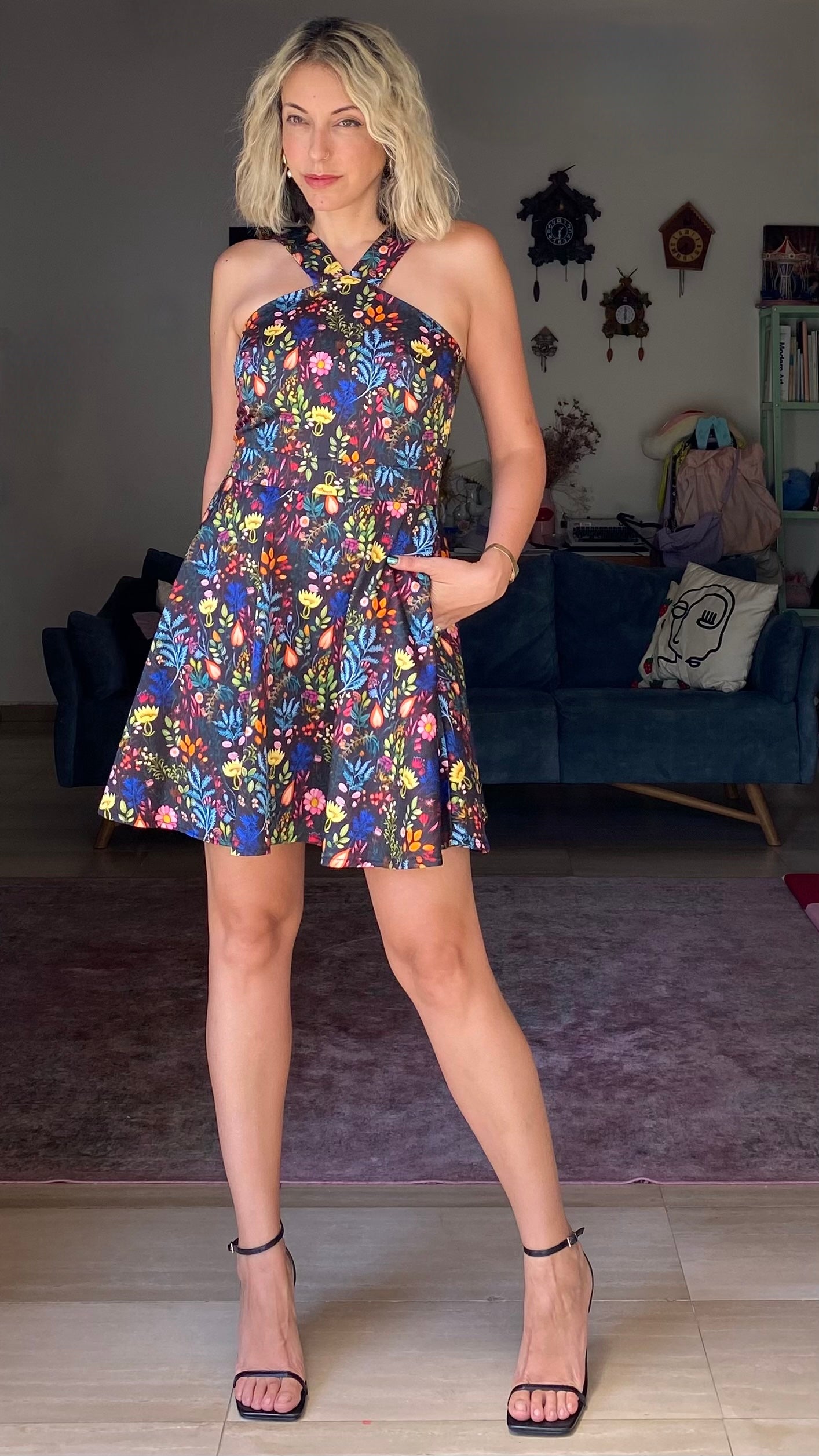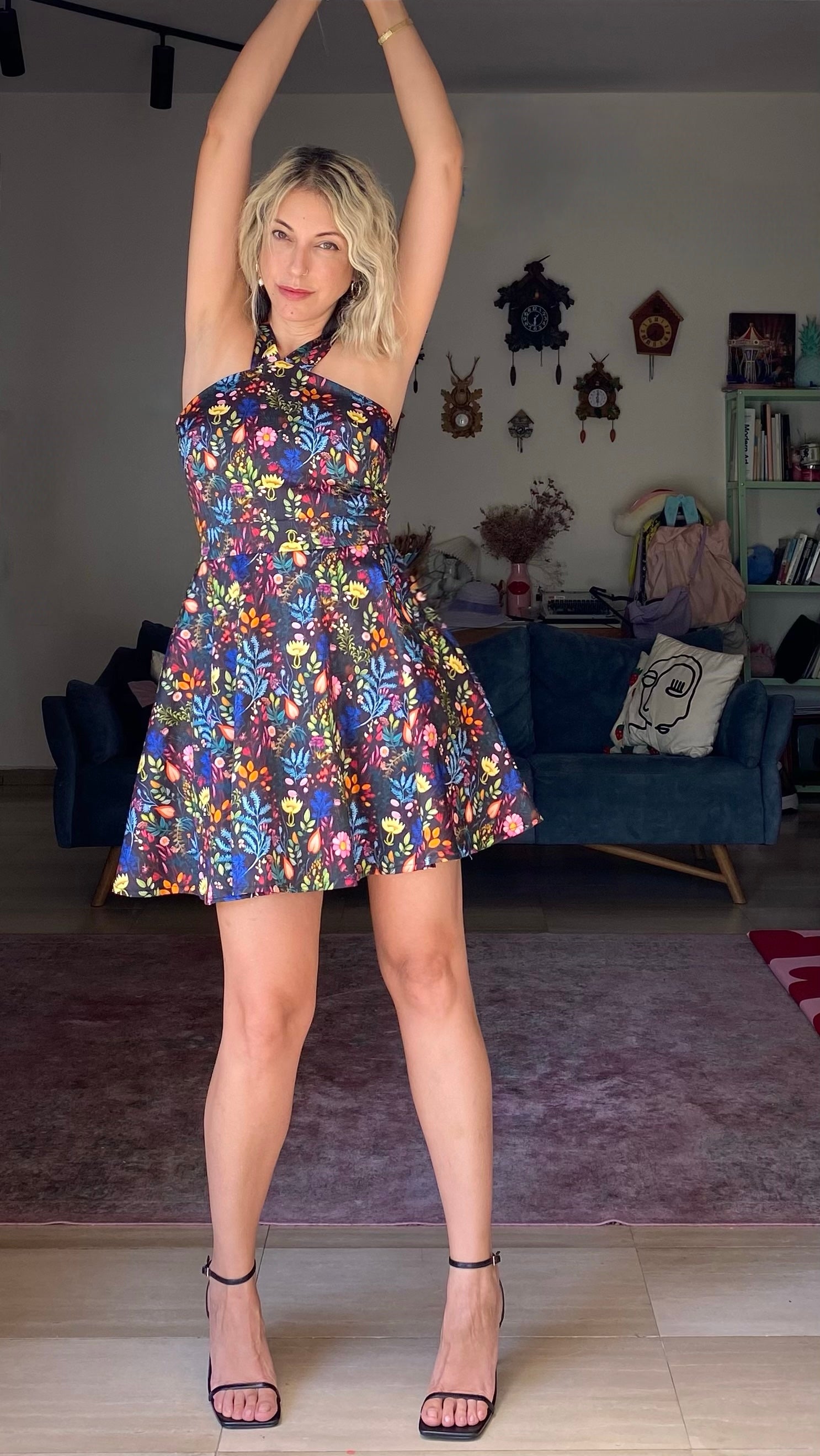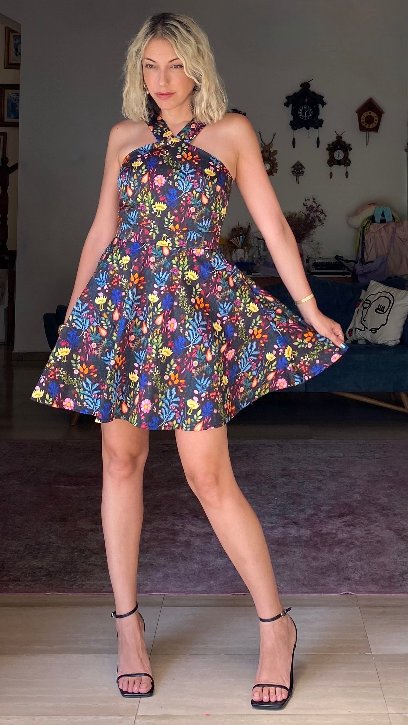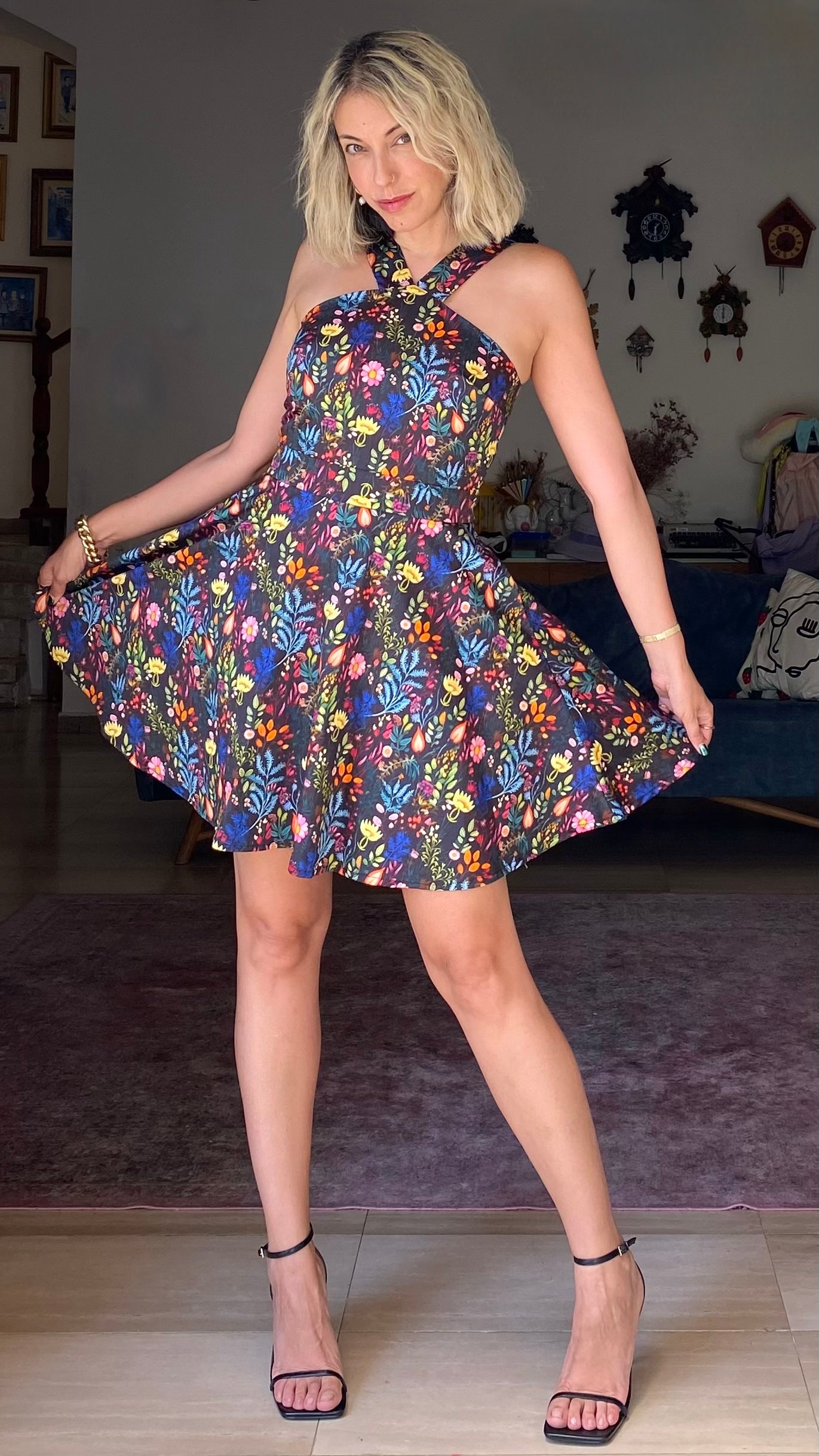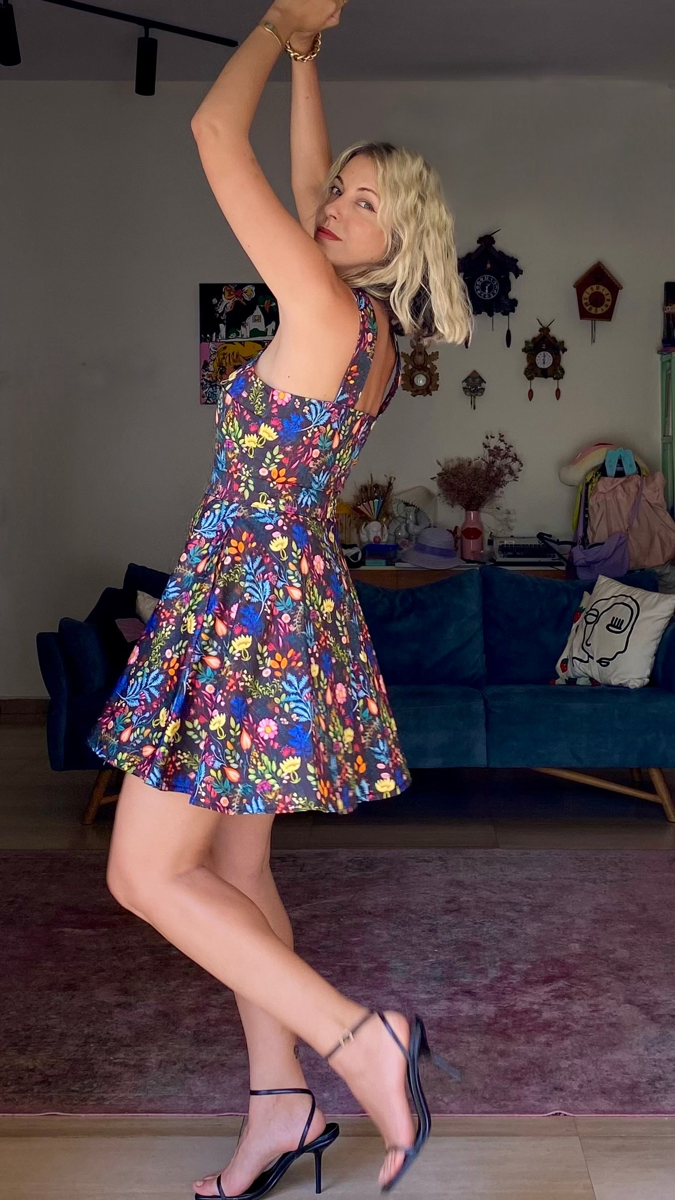 שמלת קוקטייל אייקונית ובלתי נשכחת! חלק עליון בגזרה מחטבת ומחמיאה בטירוף, חצאית קלוש בגזרה פעמונית וחלומית והדפסים היישר מארץ האגדות, אל תפספסו את השמלה הזו אין ספק שהיא עומדת להפוך לפריט אספנות
